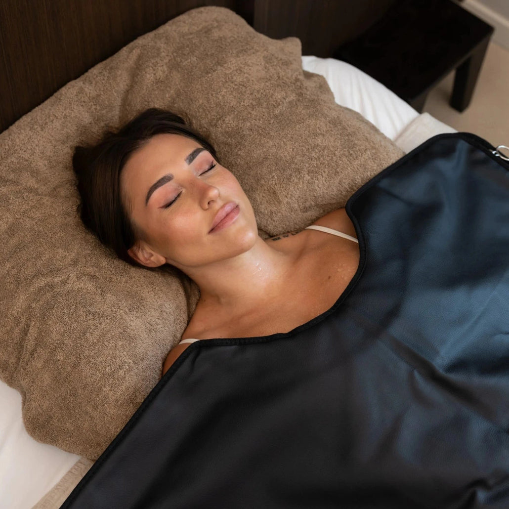 De BodyRevive® HeatPro Saunadeken helpt je om tot 600 calorieën per sessie te verbranden, terwijl je geniet van diepe ontspanning.Transformeer je afslankroutine met de kracht van infraroodwarmte!